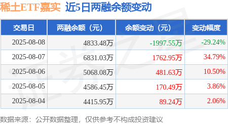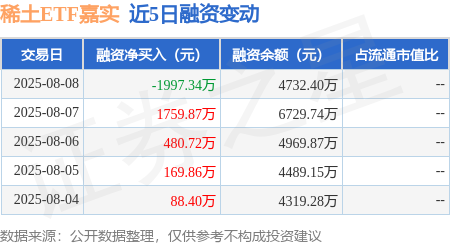 本站消息,8月8日,稀土ETF嘉实(516150)融资买入1151.93万元,融资偿还3149.27万元,融资净卖出1997.34万元,融资余额4732.4万元,近20个交易日中有11个交易日出现融资净买入。